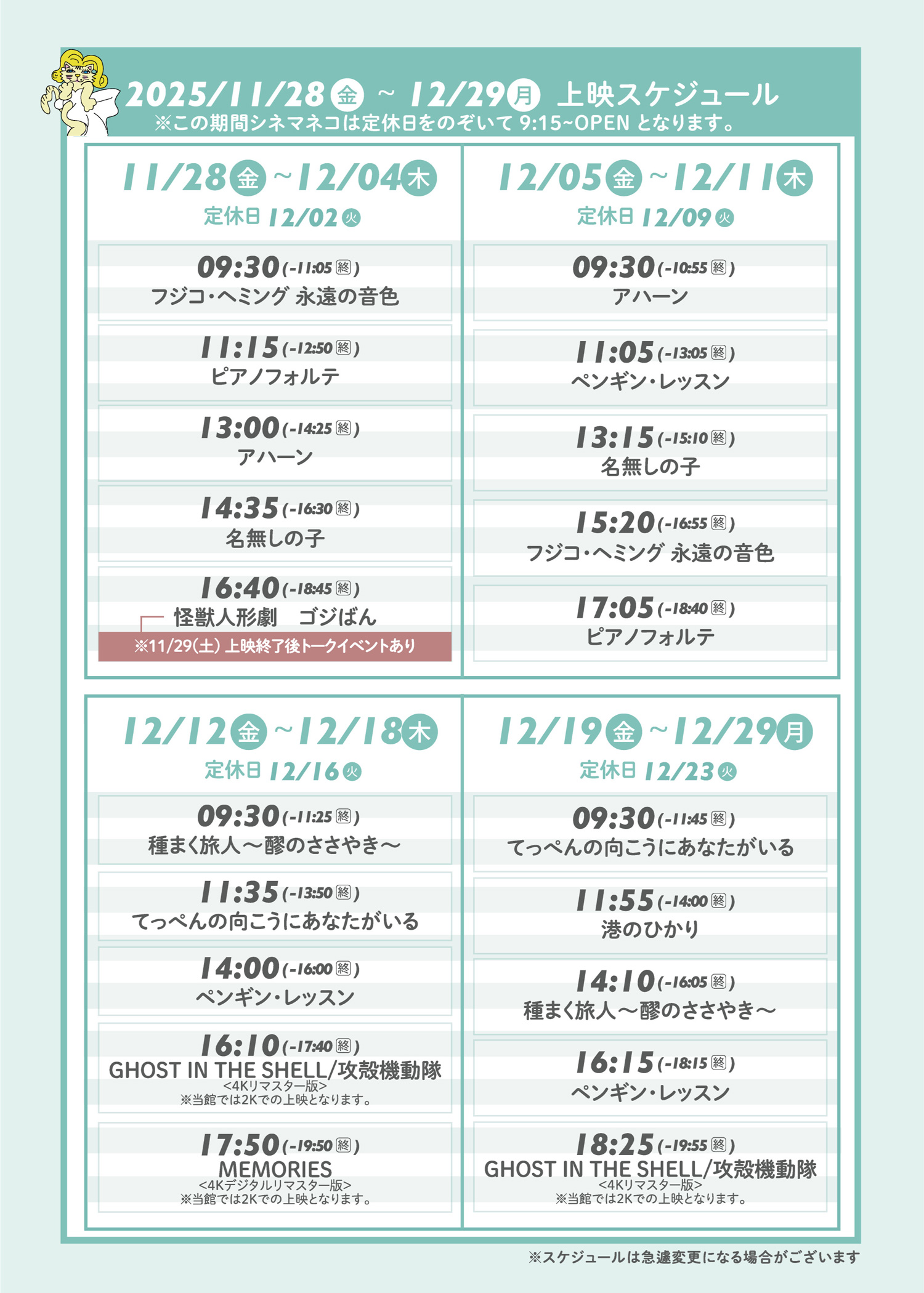 - 11/28 – 12/29:12月上映スケジュールのご案内