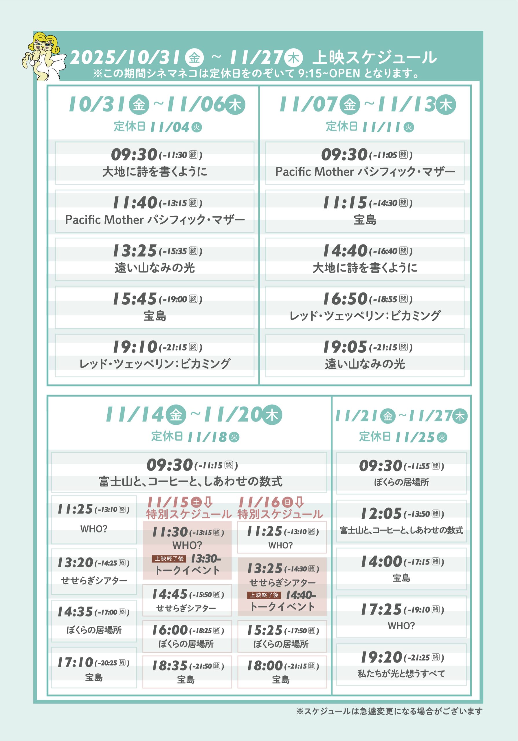 - 10/31 – 11/27:11月上映スケジュールのご案内